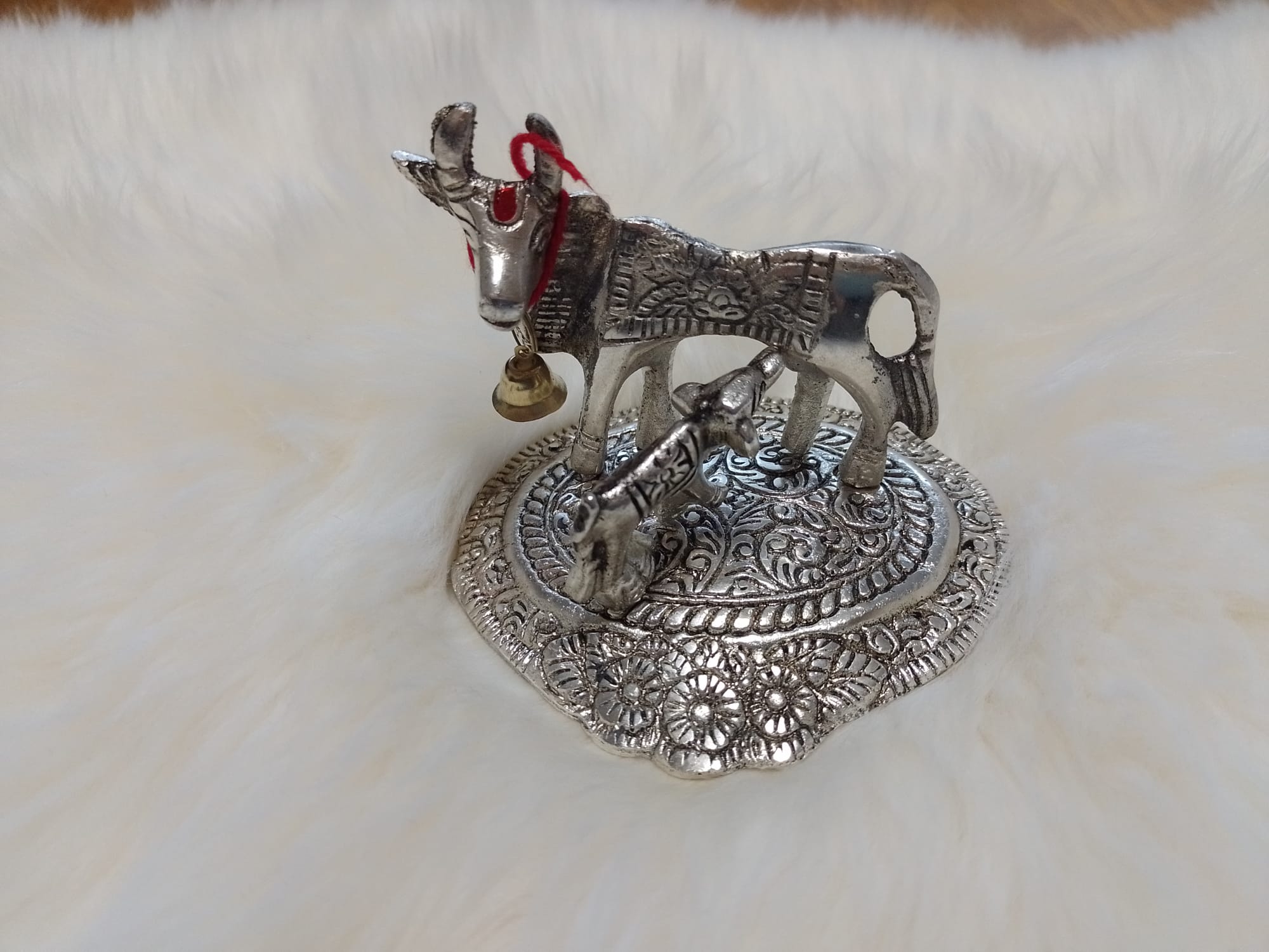 Gold Kamdhenu Cow and Calf Brass Like Metal Showpiece for Home Decor and Decorative Gift Item